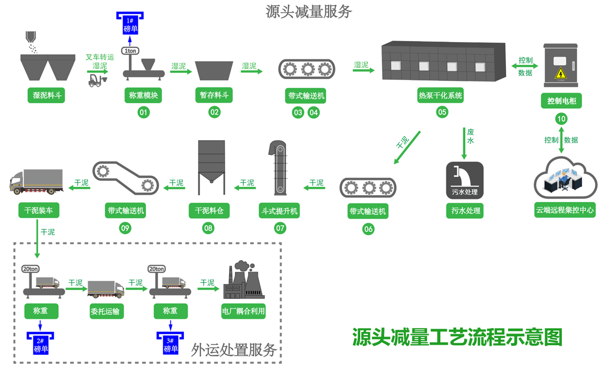 為助力無(wú)廢城市的建設(shè),實(shí)現(xiàn)污泥源頭減量、無(wú)害化、資源化政策要求,江門(mén)市國(guó)禎污水處理有限公司委托江門(mén)綠潤(rùn)環(huán)保科技有限公司為江海廠板框壓濾機(jī)脫水污泥作源頭減量及外運(yùn)處理。綠潤(rùn)科技積極探索污泥處理處置技術(shù)裝備及工藝路線,總結(jié)項(xiàng)目經(jīng)驗(yàn)做法,形成可復(fù)制、可推廣的“生活污泥源頭減量+燃煤電廠耦合利用”模式,首次運(yùn)用于江門(mén)市國(guó)禎污水處理廠脫水污泥處置及服務(wù)運(yùn)營(yíng)項(xiàng)目,在源頭把含水率65%的污泥干化減量至20%以?xún)?nèi)含水率的污泥燃料,外運(yùn)至燃煤電廠耦合焚燒發(fā)電,全過(guò)程均受業(yè)主單位及綠潤(rùn)公司監(jiān)控,安全可靠,做到“日產(chǎn)日清、泥不落地、人不觸泥”,充分體現(xiàn)了固廢減量化、無(wú)害化、資源化的處理處置原則。