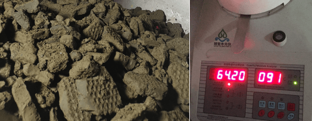 通過(guò)板框壓濾機(jī)脫水后,含水率 65%濕泥