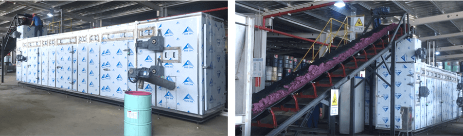 2018年4月,新會(huì)中集與綠潤科技簽訂“水性漆渣污泥源頭減量BOT項(xiàng)目”,針對(duì)該公司產(chǎn)生水性漆渣污泥,由綠潤投資、建設(shè)低溫?zé)岜酶苫O(shè)備進(jìn)行源頭減量并承接運(yùn)營,合同結(jié)束后移交設(shè)備。干化前含水率為75-85%之間水性漆渣污泥通過低溫?zé)岜梦勰喔苫O(shè)備減量化后的物料含水率為10%左右,日處理量達(dá)6-8噸。